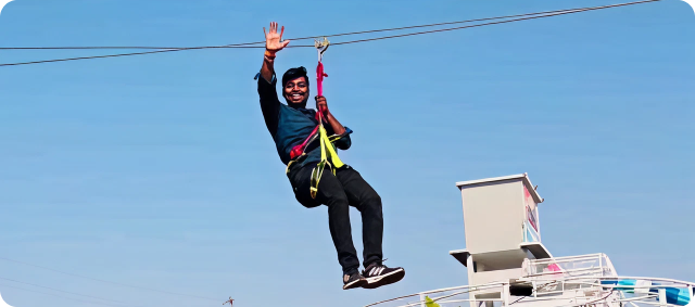 Experience the rushing air in your face as you are left free to the whims of gravity. A secure harness ties you to the zip line and securely brings you down along the line from a higher point to a lower end.